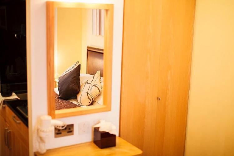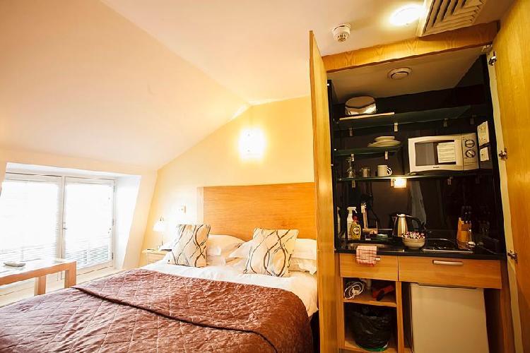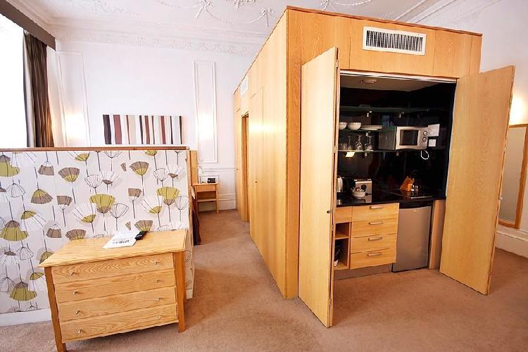Se trataba de la primera visita a Londres y de un regalo especial. Este ha resultado un magnifico viaje!!! Estuvimos hospedados 3 dias y tanto el trato personal como las instalaciones del hotel todo ha sido genial. La habitación era grande aunque la nuestra daba a un patio interior. El tema de la cocinita estaba muy bien.Se encuentra ubicado en un barrio muy tranquilo, auque no está en el centro está muy bien comunicado. Está muy cerca de Paddington station y Bayswater. Hotel muy recomendable.